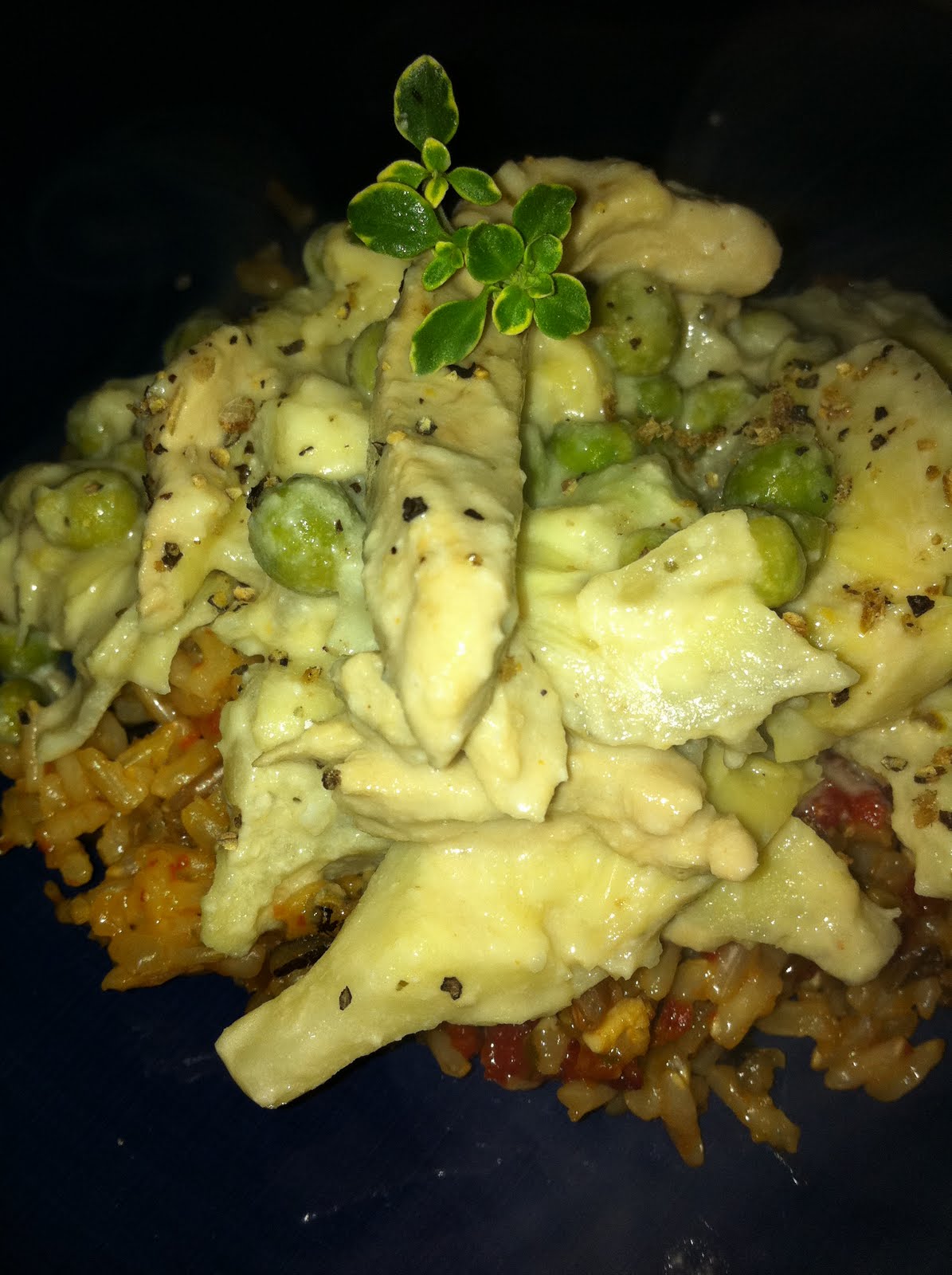 This was one of those nights where I had one ingredient that I really wanted to use (lemon thyme) and created the meal completely around it. It turned out creamy lemony good! I served it with Sun Dried Tomato and Caper Pilaf which complemented the tangy lemon sauce well.