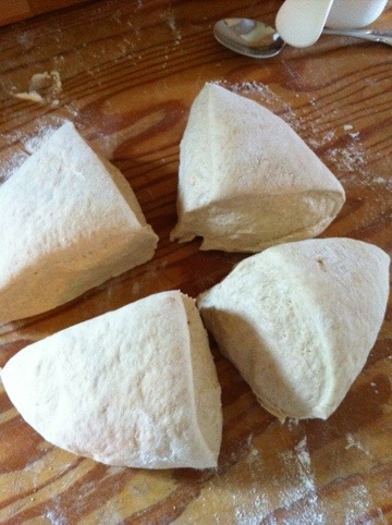 Divide dough into 4 equal pieces.
