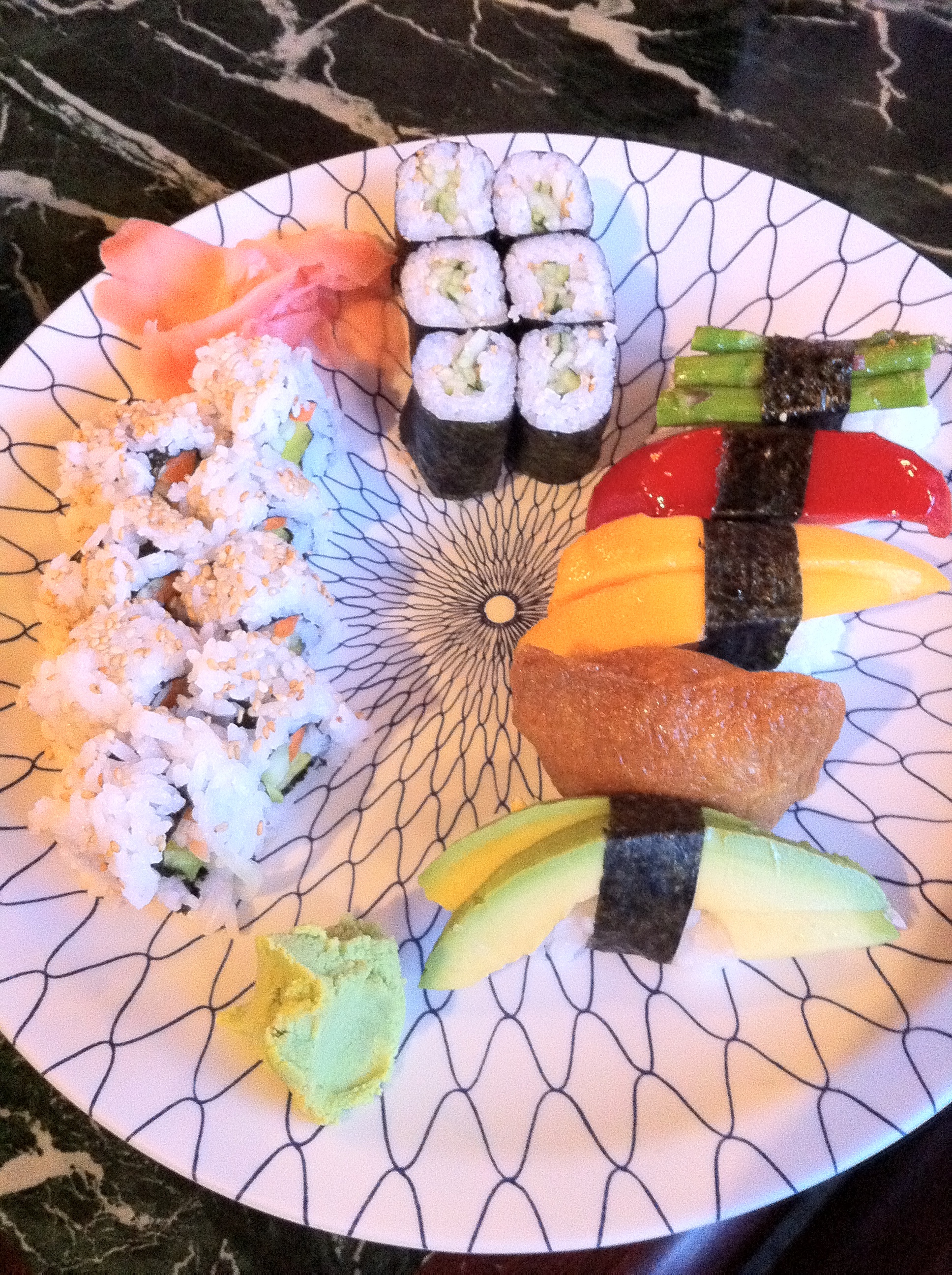 This had me thinking all day, then while we were out at a celebratory dinner for a huge achievement my daughter made in Tai Kwan Do, I looked at our Green Belt vegan sushi plate and remembered long ago how I thought I could give up anything but sushi never realizing it was the wasabi kick I craved more than anything. Later I realizes as a vegan I am able to enjoy the same joys of food as anyone else I simply choose to do it with out the animal products. Actually I find it more enjoyable knowing nothing was harmed in the process.