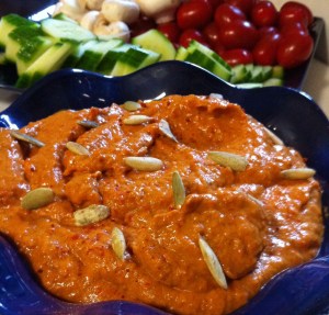 Okay, so I love Trader Joe’s but on Don’t Fear The Vegan I have been very careful about not using products specific to the store because as unfortunate as it is not everyone has access to one but for this dip I have to. The product is the Red Pepper Spread with Eggplant and Garlic, the most underrated product at Trader Joe’s. Don’t let the neon color scare you. It is amazing. You can add it to vegan mayo for sandwiches, add a dollop to your favorite tomato soup or add to cream cheese for an easy spread. Many keep it in their fridge as a condiment. If you shop at Trader Joe’s try it out. If you can’t get this product you could puree red bell pepper with garlic and have fairly similar results.