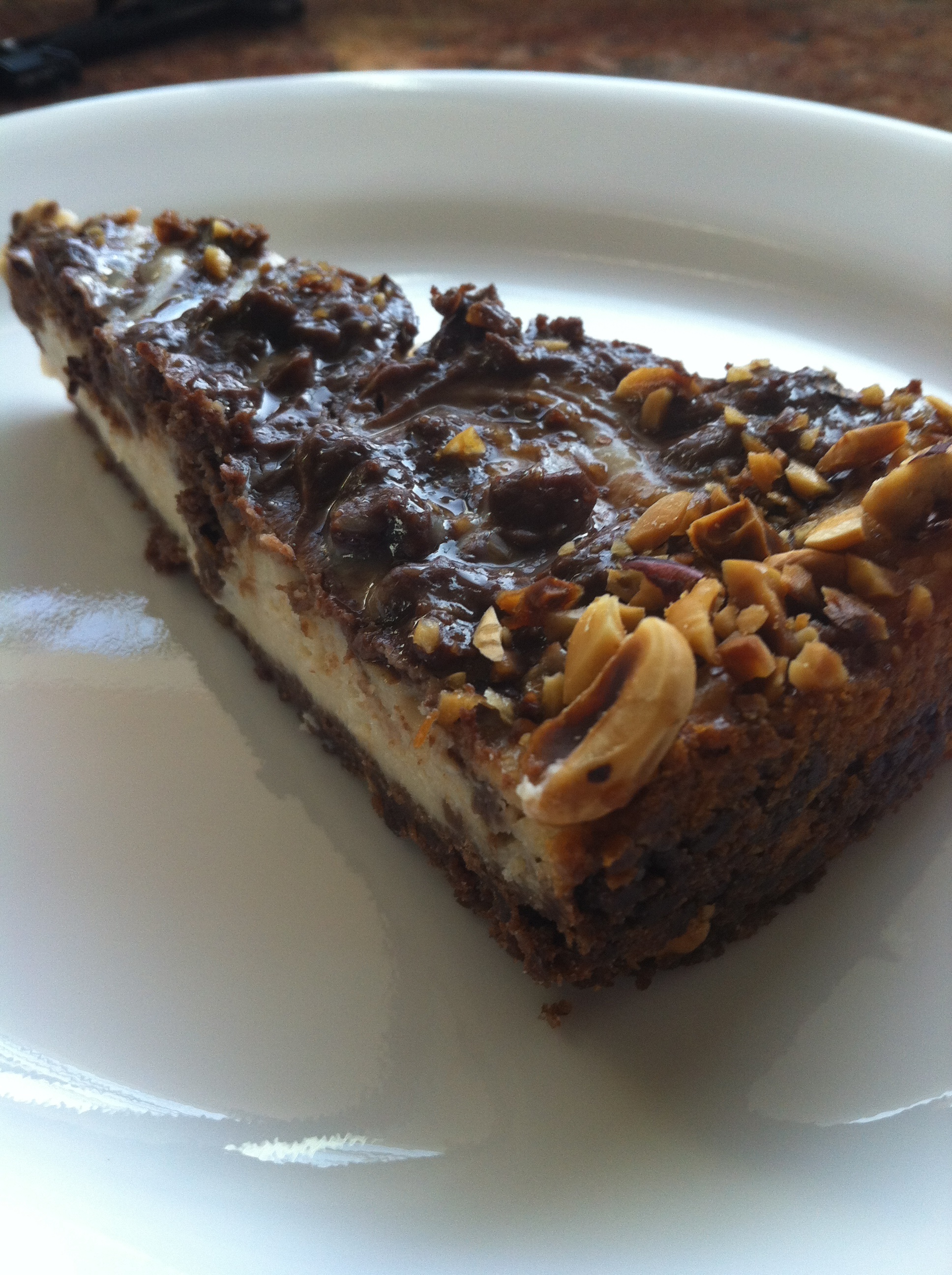 Mix melted chocolate with 1/2 cup hazelnuts separate from cheesecake mix.