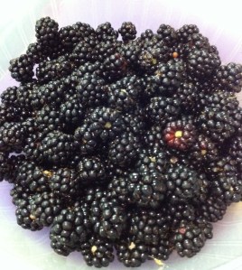 This is our stash of blackberries from our bushes and we didn’t even make a dent. Luckily they ripen in waves, so chances are you will be getting quite a few blackberry recipes from me the next few weeks. I apologize in advance but I can’t resist free food! Let me know if you have a favorite blackberry recipe!