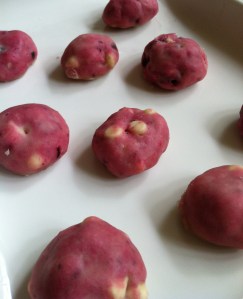 These are a light, refreshing cookie with a beautiful natural pink color. Anzia, the little vegan, wants to make them again for a tea party. The cookies picture were made using a teaspoon but the cookies I donated were made with a tablespoon. If you choose to make a larger cookie you will need to allow them 2 more minutes to cook.