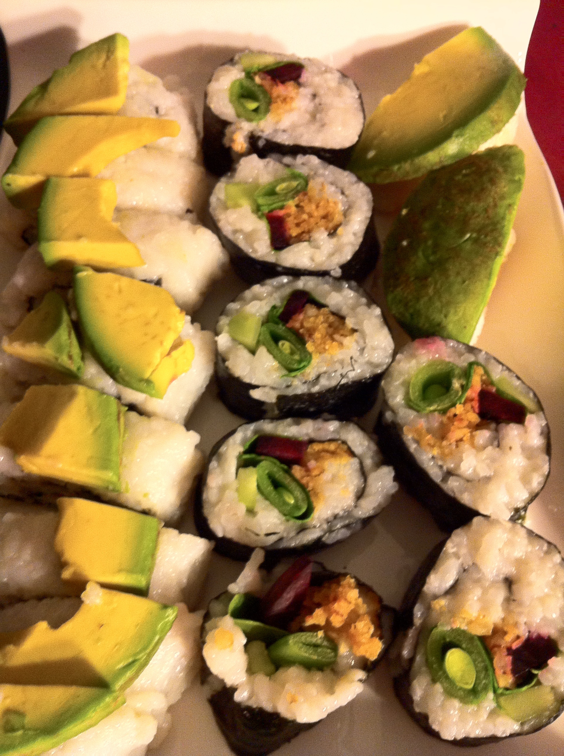My parents are in town to watch the little vegan tonight so Hubby and I can go to my company party. As a thanks we decided to make sushi for them last night. My mom has issues with iodine so we decided to make something else to go along with the sushi. I wanted something simple to make since the sushi is so labor intensive.