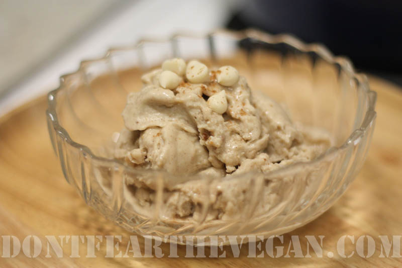I have to admit that this came to be completely by mistake. I was making a filling for a phyllo dough dessert that was a fail, due to my inability to master the art of phyllo. The combination of the filling tasting really good and not wanting to waste it I decided I would attempt to make ice cream out of it. I threw in some soy nog because I like how it taste with chai. The best part about this is that you can make it in the matter of a couple of hours.