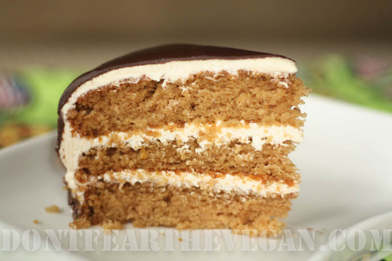 In a large bowl mix flour, salt baking soda & powder, and egg replacer. In a separate bowl mix sugar, almond milk, oil, applesauce and orange juice, orange zest and cashew cream. Slowly mix sugar mixture into flour mixture and stir until well blended. Pour batter evenly into the three pans. Tap bottom of pans to get air bubbles to the top. Bake for 20 – 25 minutes. Cake will pull away from side when done. When done let sit for approximately 5 minutes or until cool enough to touch pans with bare hands. Flip onto cooling rack. Cool completely before assembling.