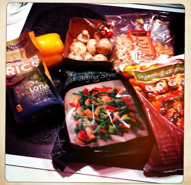 Anzia loves forbidden rice and she was the one who got to go through the cupboards and freezer to pick the meal. I added in some fresh veggies that I needed to use up.