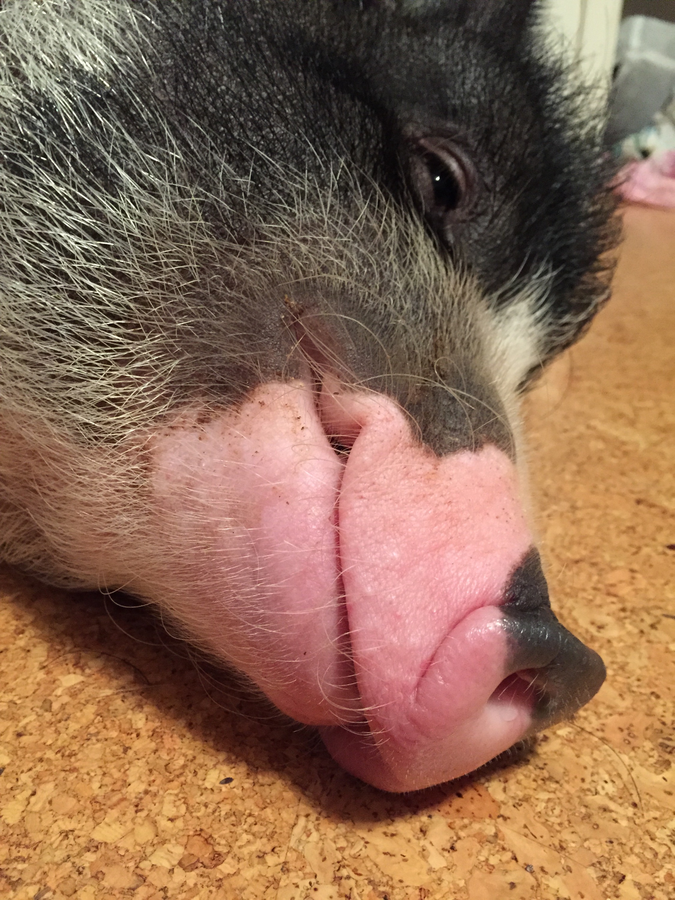 The lesson from the pig named Astrid is that she is pretty damn smart and that there is enough critical thinking going on in her brain that she can plan ahead. I have also learned that all she is really interested in, aside from food, is for me to stop what I am doing long enough to give her a rub on the belly and a kiss on the cheek.