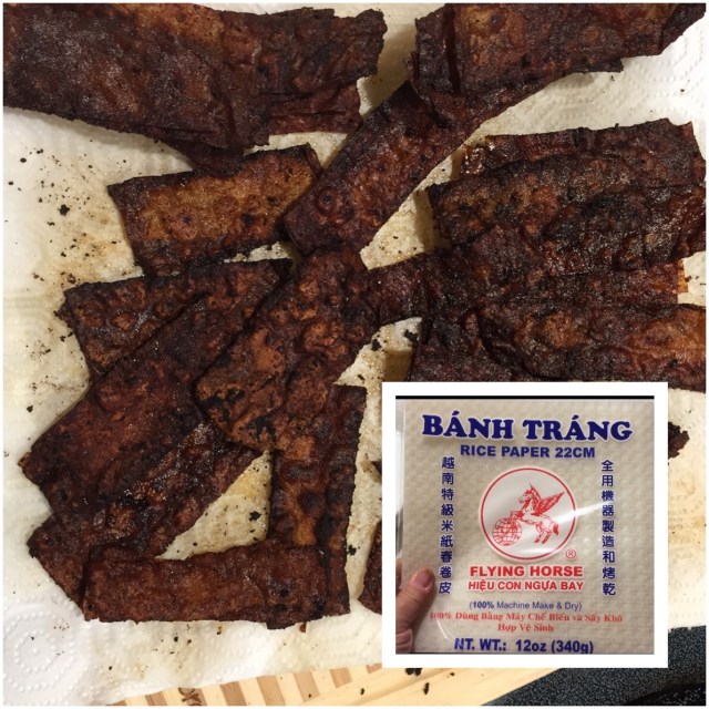 We tried these tonight. The flavor was great! My strips (not exactly strip shaped) were very chewy even after cooling. I hope I used the right kind of rice paper… all I could locate were spring roll wrappers. Maybe I didn’t cook them long enough?? A fork and tongs are definately recommended to flip. Thanks for the recipe. I may give these another shot.