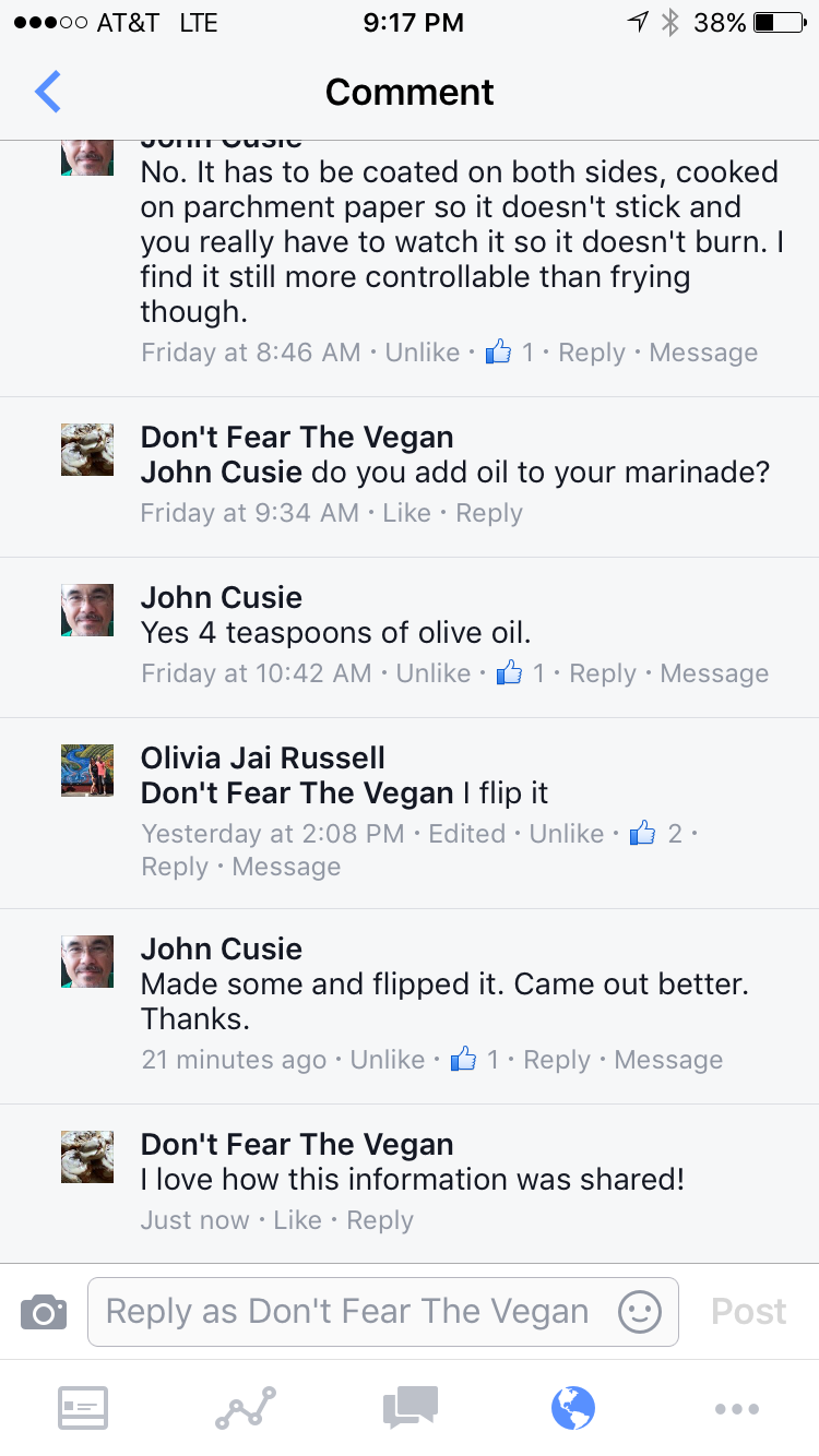 How many times have you heard people say they can’t give up their bacon? The coolest part is that we were feeding my omnivore son and his family and they loved it. I wish I would have gotten a picture of him trying it, he was in shock at how similar it was. He said that if he didn’t know his vegan mom made it he would have thought it was real.