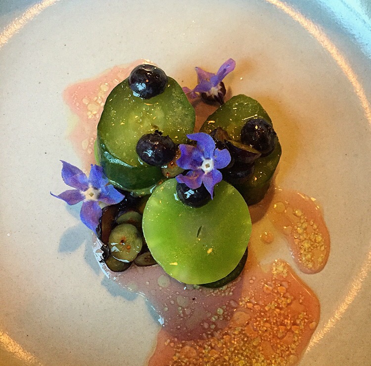 Cucumber, celtuce, blueberry, rhubarb, borage