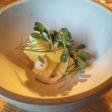 Potato, sunflower yogurt, lemon balm, dill, purslane